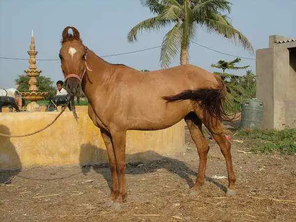 - Chestnut: Chestnut Kathiawaris has a reddish-brown to dark brown body coat. They may have variations in shade, from light chestnut to dark liver chestnut.